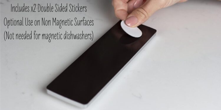 The dishwasher magnet comes with strong magnets for easy attachment to any magnetic surface. Additionally, it includes bonus adhesive stickers for non-magnetic surfaces, ensuring that it can be used in any kitchen or laundry room. Its versatility makes it a valuable addition to any home.