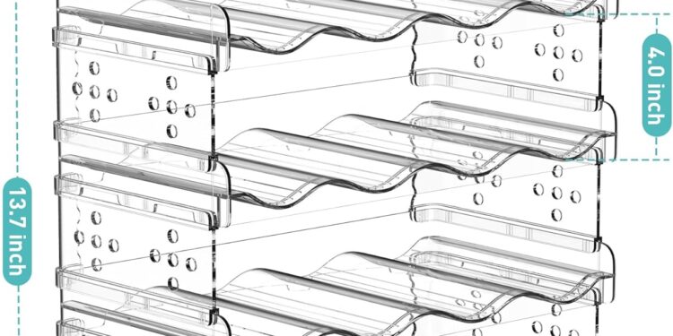 If you’re looking for an aesthetically pleasing storage solution for your bar or wine cellar, the Water Bottle Organizer is an excellent choice. Its sleek clear plastic design blends seamlessly into any environment, giving off a uniform and organized look.